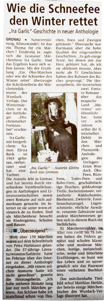 Artikel über Elvira Reck in der Leine-Deister-Zeitung